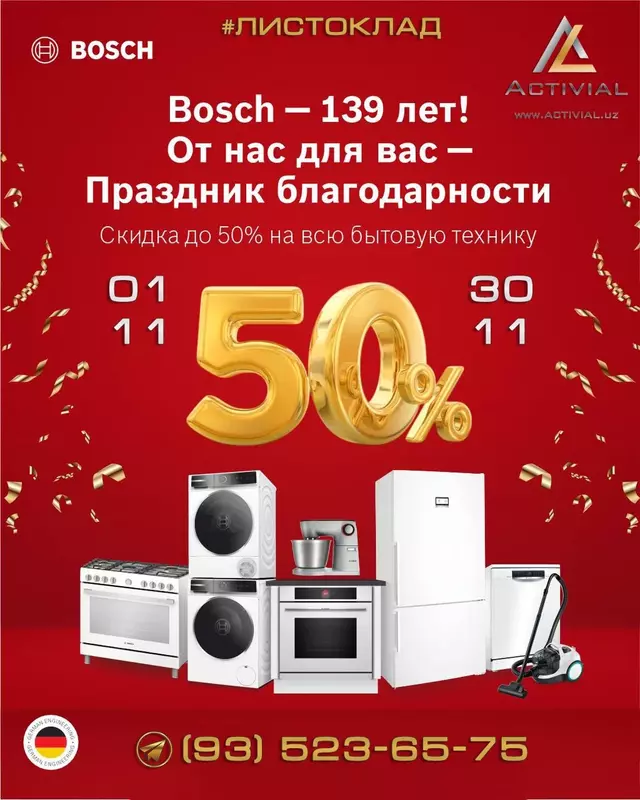 🌟 BOSCH — 139 лет инноваций и доверия!В честь дня рождения компании мы проводим праздник благодарности для...